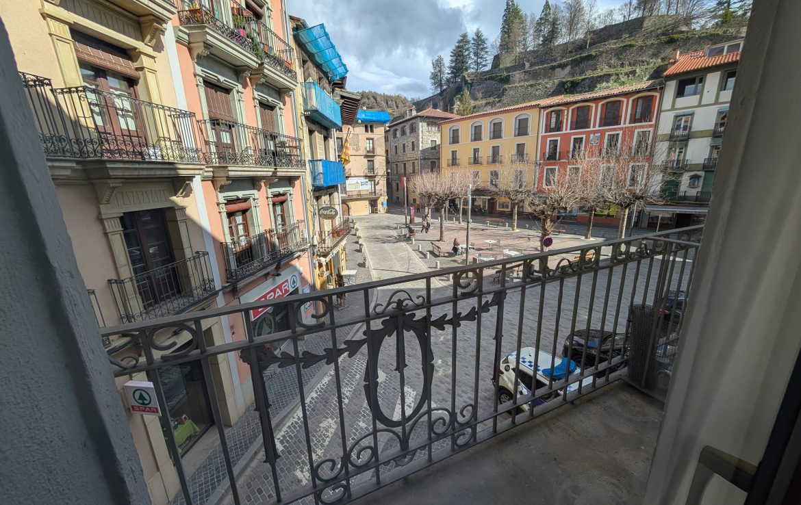 Acogedor piso situado en plena Plaza de la Vila de Camprodon, una ubicación inmejorable para disfrutar del ambiente del pueblo con todos los servicios a pie de calle.