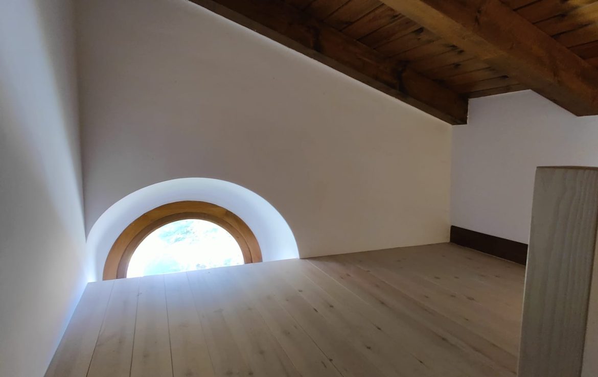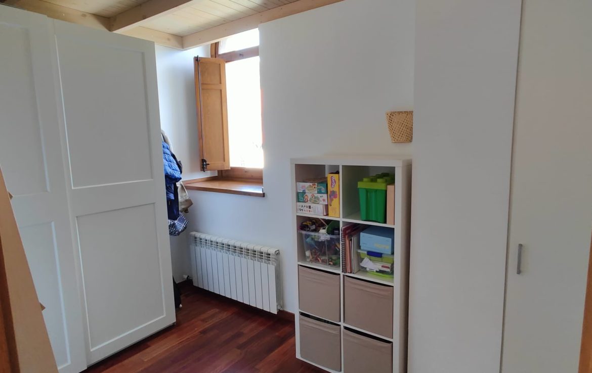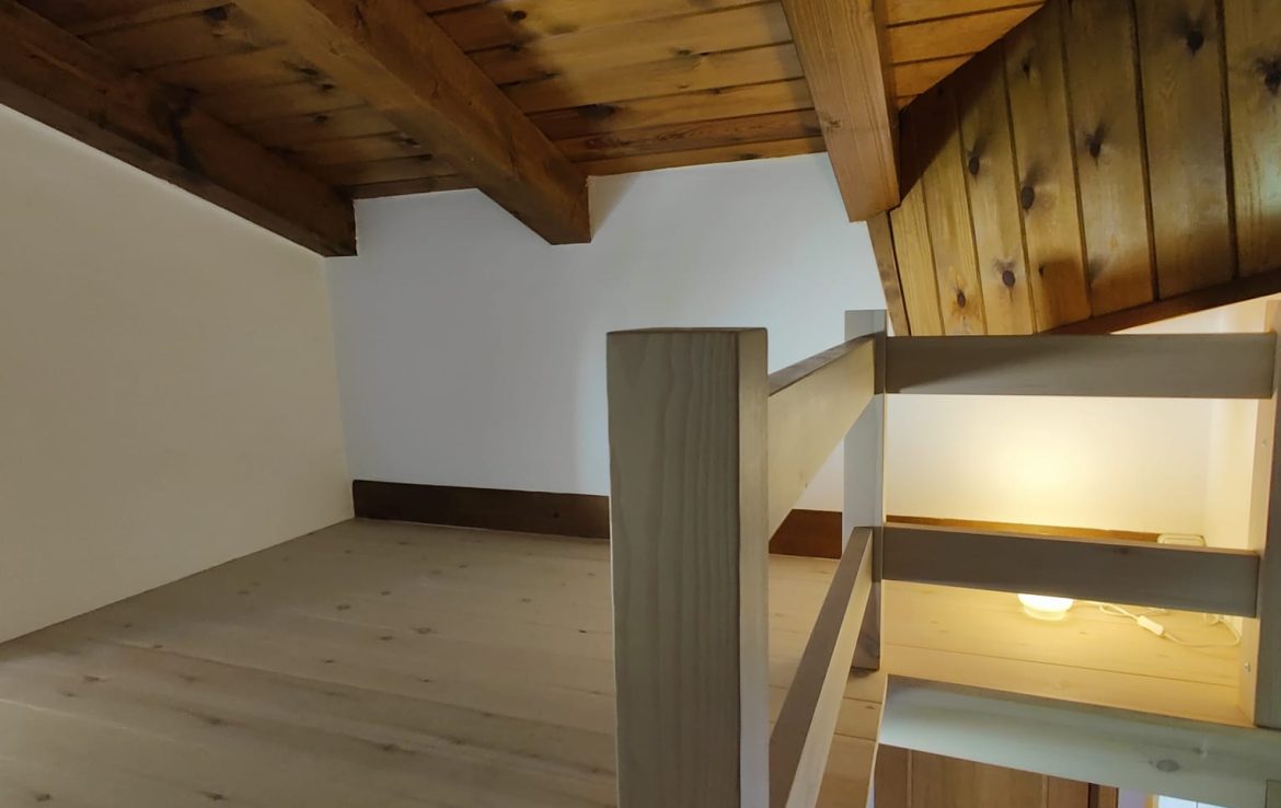 The property features three bedrooms, two bathrooms, and a cozy loft space that can be used as a study, playroom or office. The kitchen and living-dining area share a large open space, highlighted by a fireplace that brings warmth and a true mountain atmosphere.